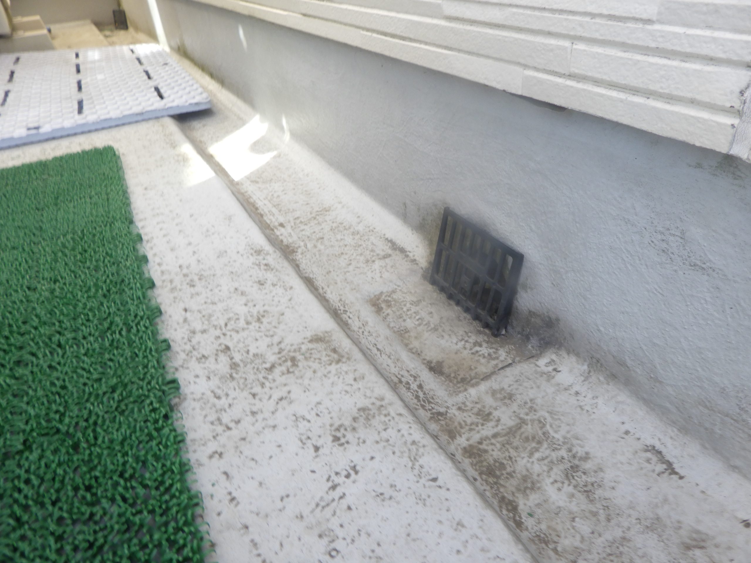 • 外壁に近い部分に黒ずみや汚れの筋がありました。これは雨水や湿気がたまりやすくなっている兆候です。